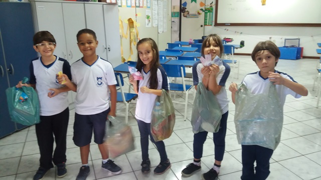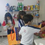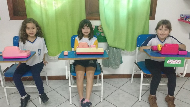 As turmas do 1º ano fundamental (manhã e tarde) montaram um “Mercadinho” em nossa escola, com o objetivo de introduzir o conhecimento sobre o sistema monetário em situações do cotidiano. Trabalharam valores, diferença de preços, adição e subtração.