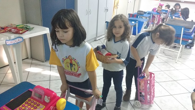Foi uma aula divertida e prazerosa, onde os comentários dos alunos eram “Tia, parece mesmo que estamos em um supermercado de verdade”.