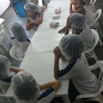 Os alunos do 1º ano colocaram a mão na massa e fizeram uma deliciosa receita, “Docinho de leite em pó”.