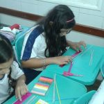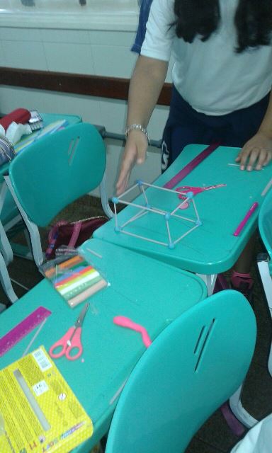A turma foi divida em duplas e juntos  produziram prismas e pirâmides.