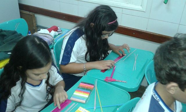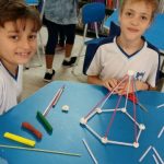 Os sólidos geométricos são  figuras tridimensionais, ou seja, que apresentam três dimensões. Podem ser classificados em Corpos Redondos e Poliedros. Com o objetivo de  conhecer melhor os poliedros e esclarecer dúvidas sobre faces, arestas e vértices realizamos com as turmas do 4º ano  montagens tridimensionais utilizando massinha de modelar e canudinhos.