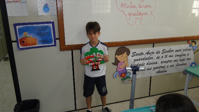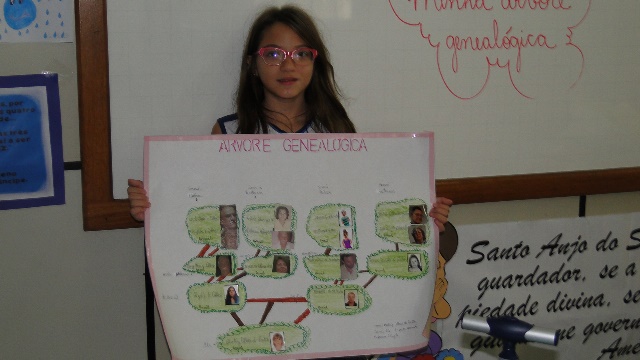 Os alunos apresentaram sua árvore genealógica para a turma identificando a nacionalidade dos seus parentes.