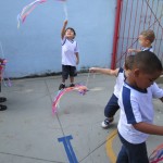 Os alunos da Educação Infantil II trabalharam diferentes conceitos como cores, tamanho, movimento, noção espacial e coordenação a partir da divertida brincadeira “Barangandão”.