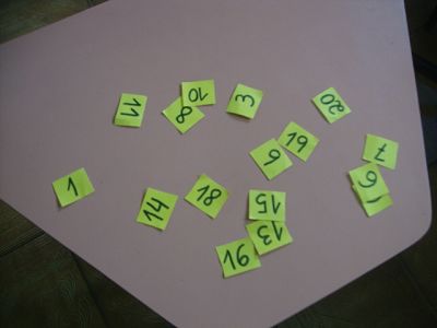 As cartelas foram distribuídas para a contagem e montagem da sequência numérica. Ao retirar do saco um número o procurava na cartela.  Ganhou quem completou a cartela primeiro. Foi uma aula muito animada!