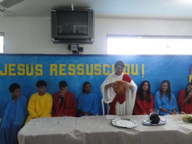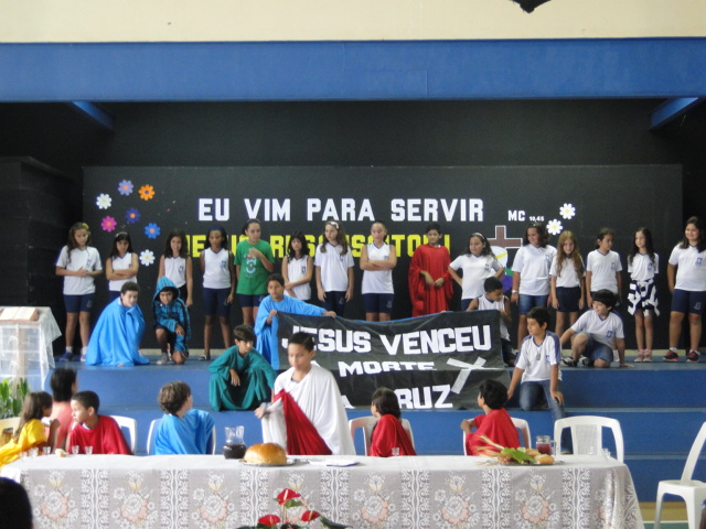 Dia 01 de abril o colégio Castelo IV celebra a ceia do Senhor  Jesus com todos os alunos.