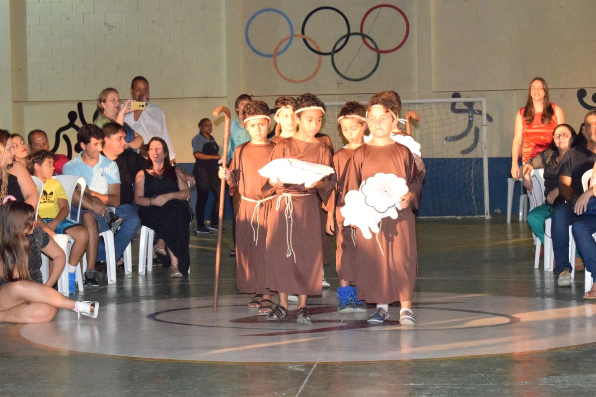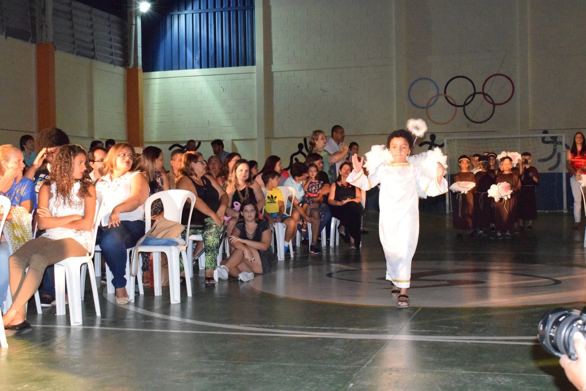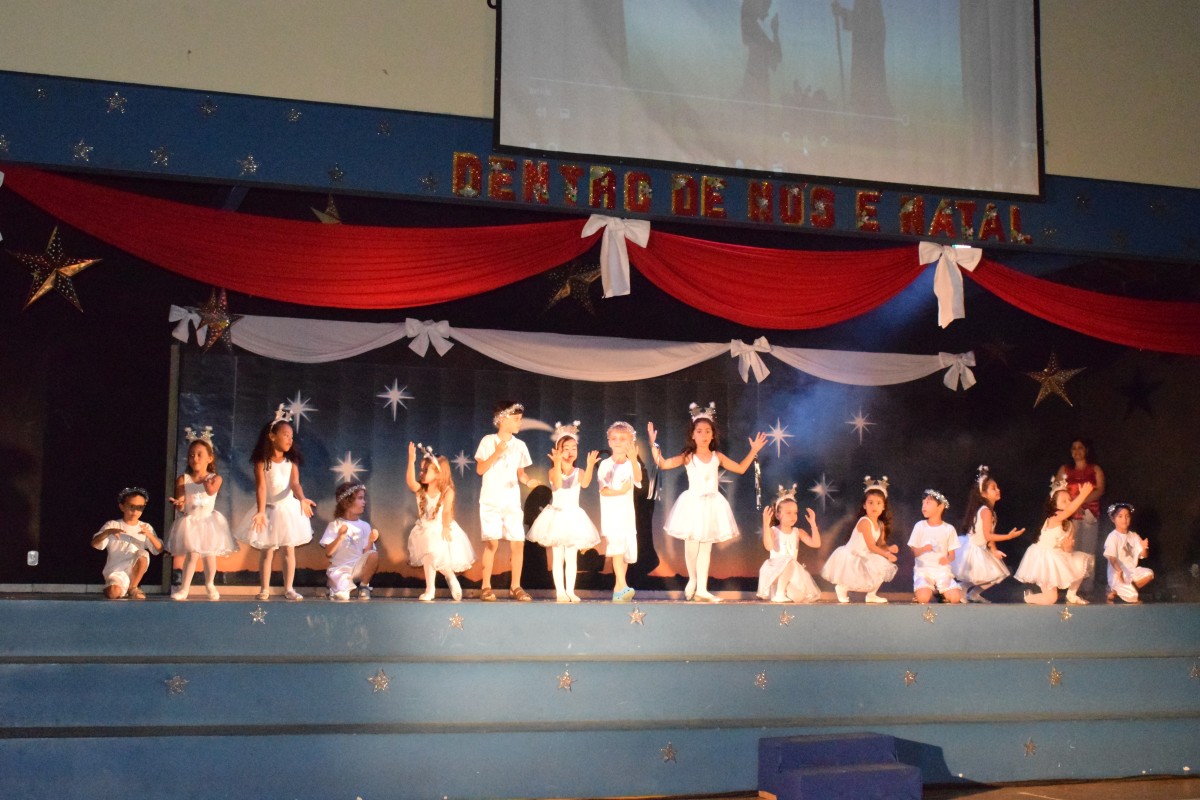 Os alunos representaram os personagens principais do presépio, os animaizinhos, as estrelas, sinos, anjos, pastores, reis magos através de músicas e danças.