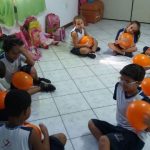 No dia 09 de junho, os alunos do 1º ano fundamental (manhã e tarde), realizaram uma dinâmica com balões. No 1º momento os alunos ficaram em círculo, receberam uma bexiga com o refrão da música “Nunca pare de sonhar” dentro. No 2º momento teriam que jogar as bolas para cima sem deixar cair, pois elas representariam sua vida. No 3º momento, em roda novamente iriam expressar com gestos no balão o carinho que cada um tem com a sua própria vida. No 4º momento, destacar que a vida é uma explosão de alegria, e assim cada um deveria explodir seu balão e ler a mensagem que estava dentro dele. E para finalizar conversamos sobre o trecho da música, cada aluno levou o trecho da música para casa para ler com a família. O objetivo maior dessa dinâmica era que os alunos percebessem a importância que cada um tem perante a sociedade e o cuidado que devemos ter um com o outro.