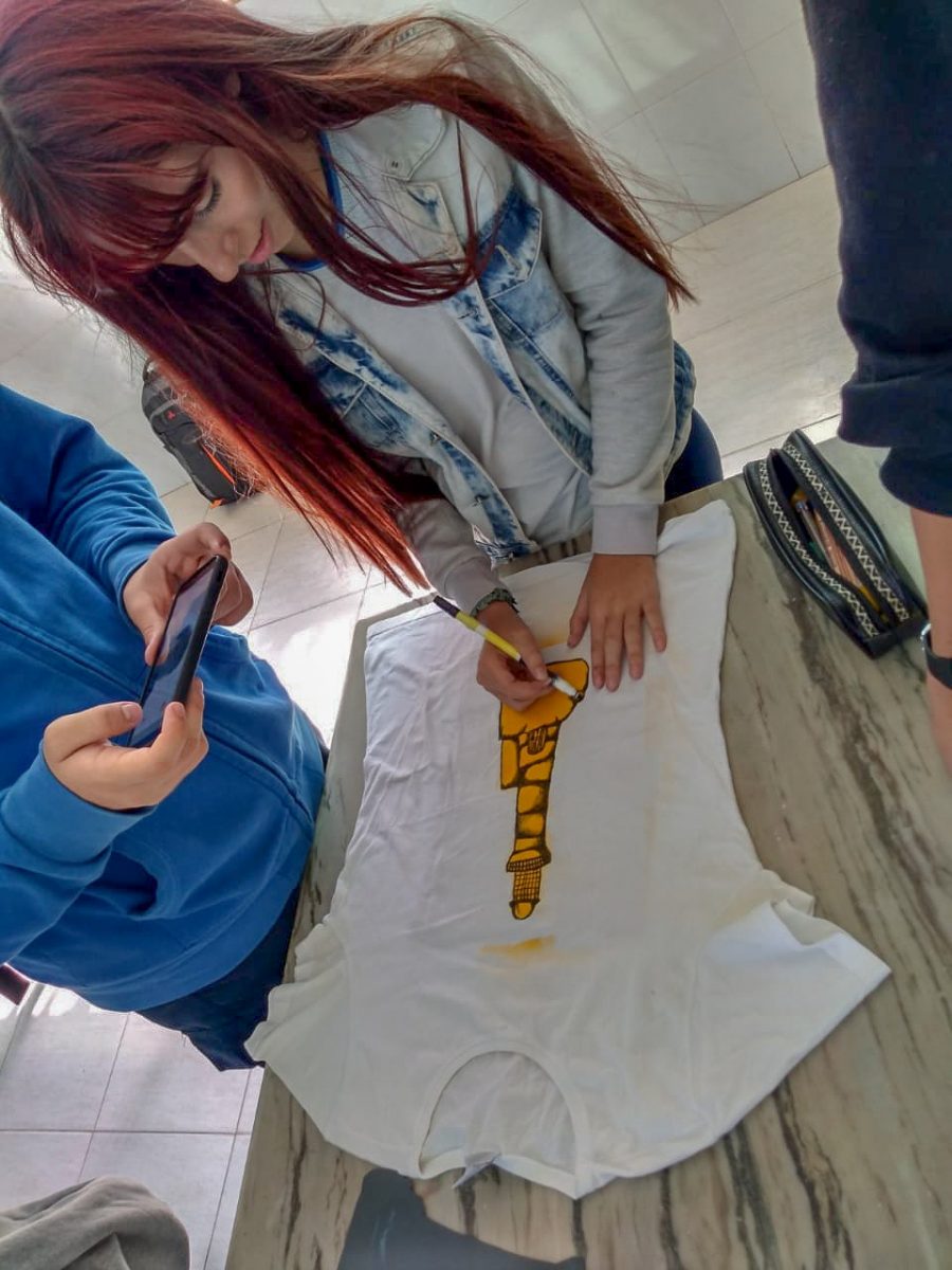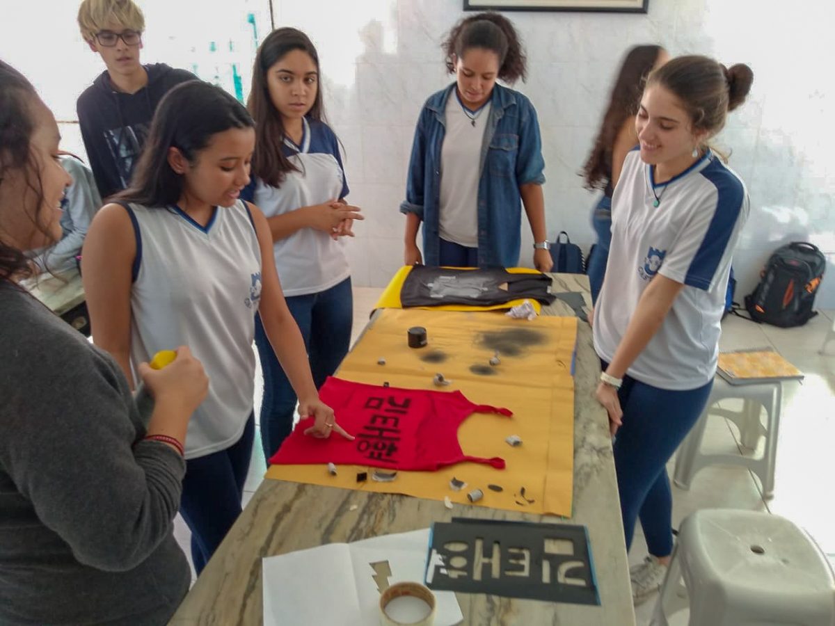 As turmas 1001 e 1002 realizaram neste mês na disciplina de Artes, uma aula prática sobre stencil (técnica muito utilizada em obras de arte urbana). A ideia foi produzir estampas para camisetas, utilizando moldes cortados em folhas de radiografia e tintas spray de diversas cores. O projeto concluiu o conteúdo abordado no primeiro trimestre “Arte Urbana e outras conexões”, onde os alunos perceberam o impacto social de alguns processos artísticos na sociedade.