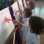 Recursos utilizados: Tinta, folhas, pincéis e cavaletes.