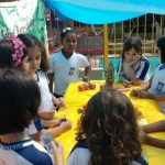 Para concluir o projeto “Descobrindo o mundo através dos sentidos”, no último dia 27 de outubro, o infantil III, da professora Ana Paula Ferrari, realizou a feirinha “Aroma das Frutas”, que de forma multidisciplinar, puderam levantar hipóteses, desenvolver noções de adição, subtração, conhecer o sistema monetário, ampliar o vocabulário e desenvolver a escrita de novas palavras. A turma ainda participou de uma deliciosa e colorida degustação das frutas trazidas por eles, experimentando novos sabores. Foi um momento de descoberta e descontração para os alunos do Castelinho II.