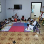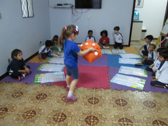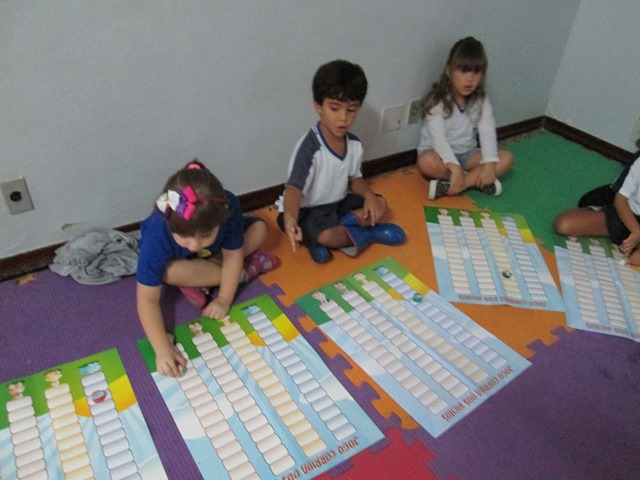 Recursos utilizados: tabuleiro com os bichos, tampinhas e dado.