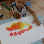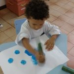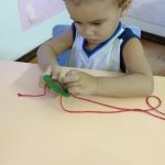 Nesse semestre, a turma do Maternal participou de várias atividades que envolveram a coordenação motora fina como: rasgar papéis e colar papéis fazendo movimento de pinça. Utilizaram também a técnica com a esponja e aprenderem a prender e tirar os pregadores da roupa, utilizaram tesoura e alinhavo. As atividades aconteceram nas aulas de movimento e socialização com objetivo de desenvolver coordenação motora e estimular as habilidades visuais e cognitivas de forma dinâmica e agradável.