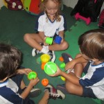 EXPLORANDO OS POTES, DESCOBRIMOS QUE PODEMOS ORGANIZÁ-LOS DE VÁRIAS FORMAS: EMPILHANDO (MONTANDO TORRE), ENFILEIRANDO (MONTANDO ESCADA), ENCAIXANDO UM DENTRO DO OUTRO.