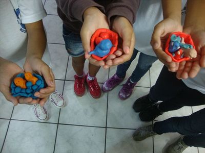 Recursos utilizados: massa de modelar, argila, palitos, lã e barbante.