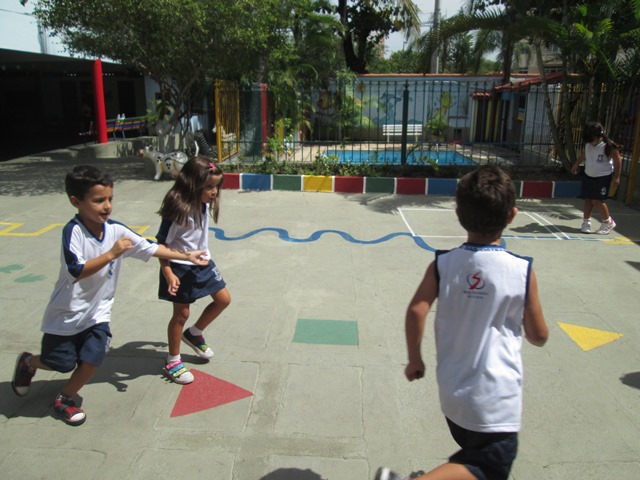 Através da brincadeira pegadores de ratinhos trabalhamos a distância, velocidade, relações temporais e espaciais, noções de números e medidas.