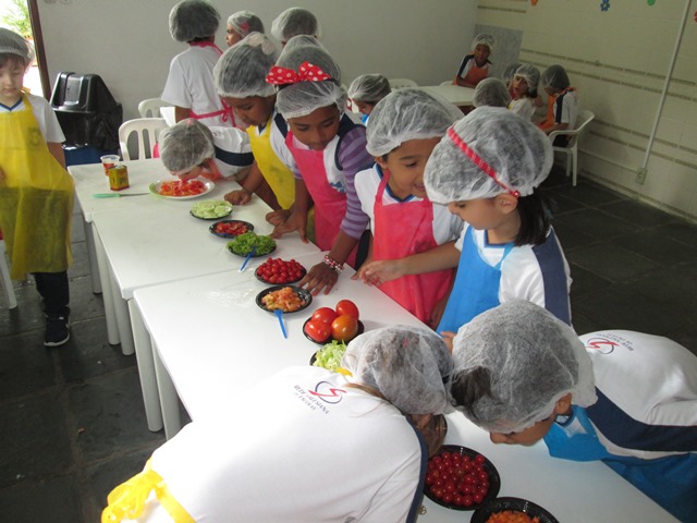 Os alunos do infantil III, manhã e tarde, através do projeto “Descobrindo o mundo através dos sentidos” da disciplina de natureza e sociedade, desenvolvido no dia 26 de outubro, participaram da cozinha experimental, descobrindo novos sabores através da “salada, saladinha”. Os alunos exploraram seus sentidos, descobriram como a alimentação saudável é importante para prevenir doenças, para o desenvolvimento saudável das crianças e também aprenderam sobre como realizar a higiene das verduras e legumes. O momento mais prazeroso foi a degustação de uma deliciosa salada preparada por eles, ninguém ficou de fora.
