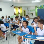 Foram distribuídas as cartas do jogo entre dois jogadores. Cada aluno organizou o seu “bolo” de cartas. Os dois viraram juntos a 1ª carta do seu “bolo”. O jogador que virou a maior carta, levou as duas. Venceu quem ficou com o maior número de cartar no final do jogo.