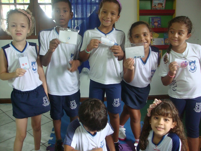 Com o objetivo de valorizar os nomes próprios, a escrita significativa e rica fonte de comunicação, os alunos confeccionaram os crachás. Foi uma aula muito produtiva!